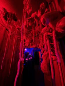 Monkey-C is a strange, hallucinogenic trip into the bizarre and sublime. Its winding pathways bring visitors into a labyrinth of surreal “mutant machines,” ancient radios that whisper strange messages, nostalgic arcade games that have been repurposed, cantankerous machines with siren songs of glowing buttons, sudden alleyways of dizzying colours, and strange creatures.
