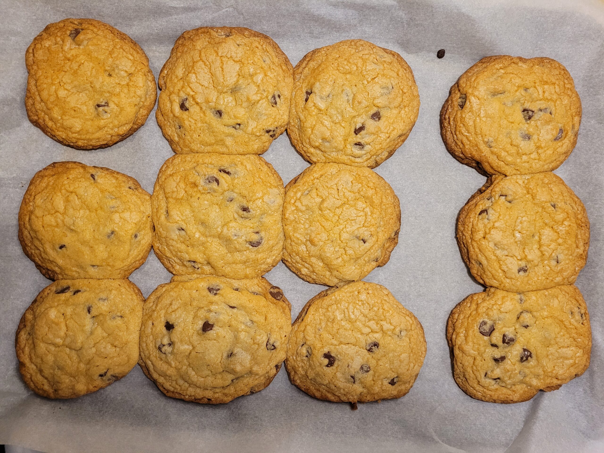 Here are some extra tips to make this recipe even more stress free. Beat your eggs before adding to the large bowl; doing this helps with the mixing process later on. These cookies spread quite a bit, so keep this in mind when portioning the dough onto the tray if you want a round shape. Depending on your oven, your cookies may bake unevenly; switch the baking trays on the oven racks halfway through the bake time to help prevent the bottom tray of cookies from burning. Also, depending on the size of the cookies, you may need to bake them in batches. The dough is okay to sit and rest, but make sure to cover it and put it in the fridge between baking.