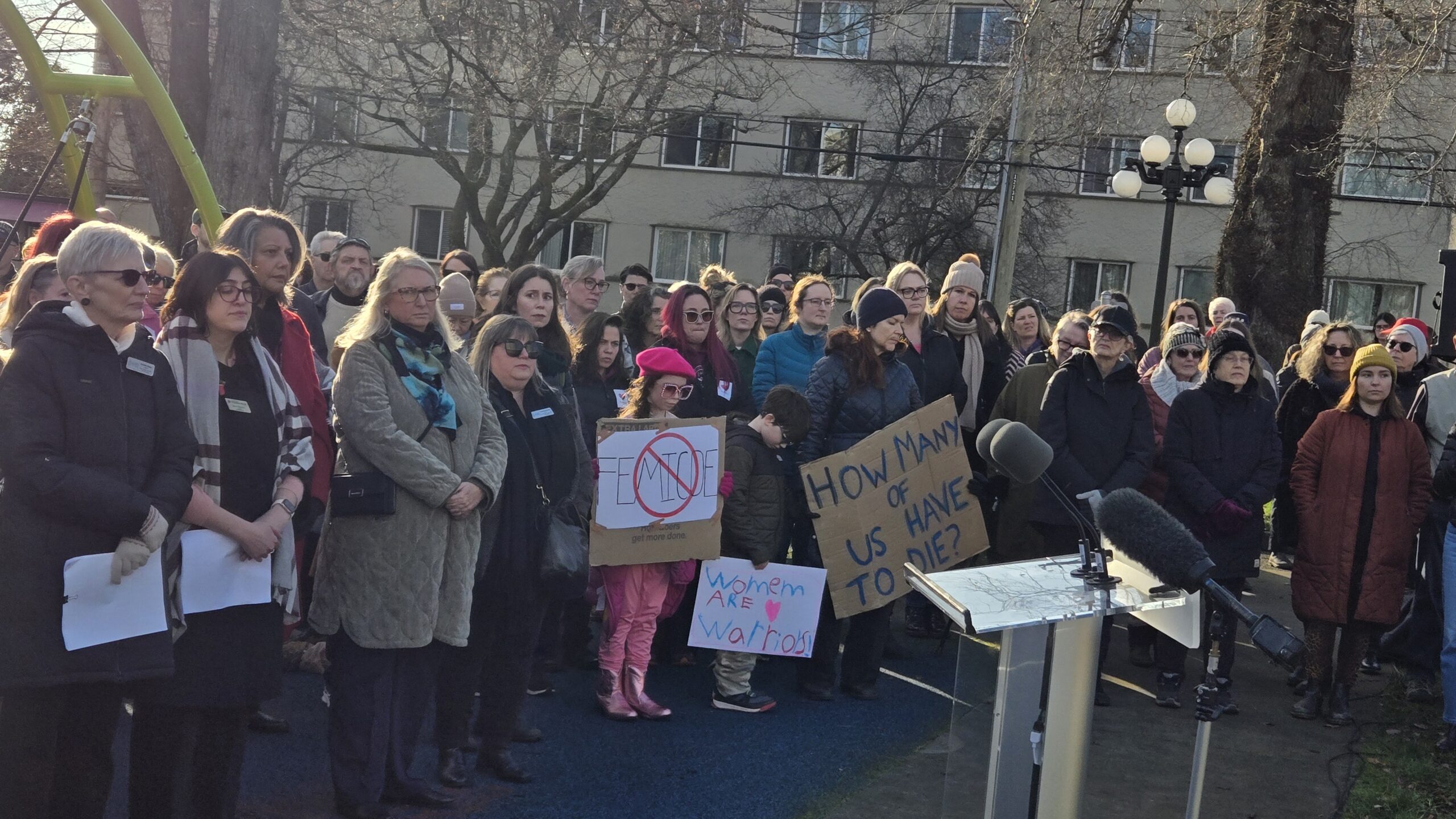 “We gather not only to honour [Gover’s] life, but to demand accountability for the gaps that—despite years of collective advocacy—persist within the system, and to present solutions that evidence tells us will work,” Victoria Women’s Transition House executive director Bahar Dehnadi said while addressing the crowd at the press conference. “This is about respect, treating survivors with the dignity that they deserve. About prevention. Stopping violence before it turns fatal, and it is about public safety.”