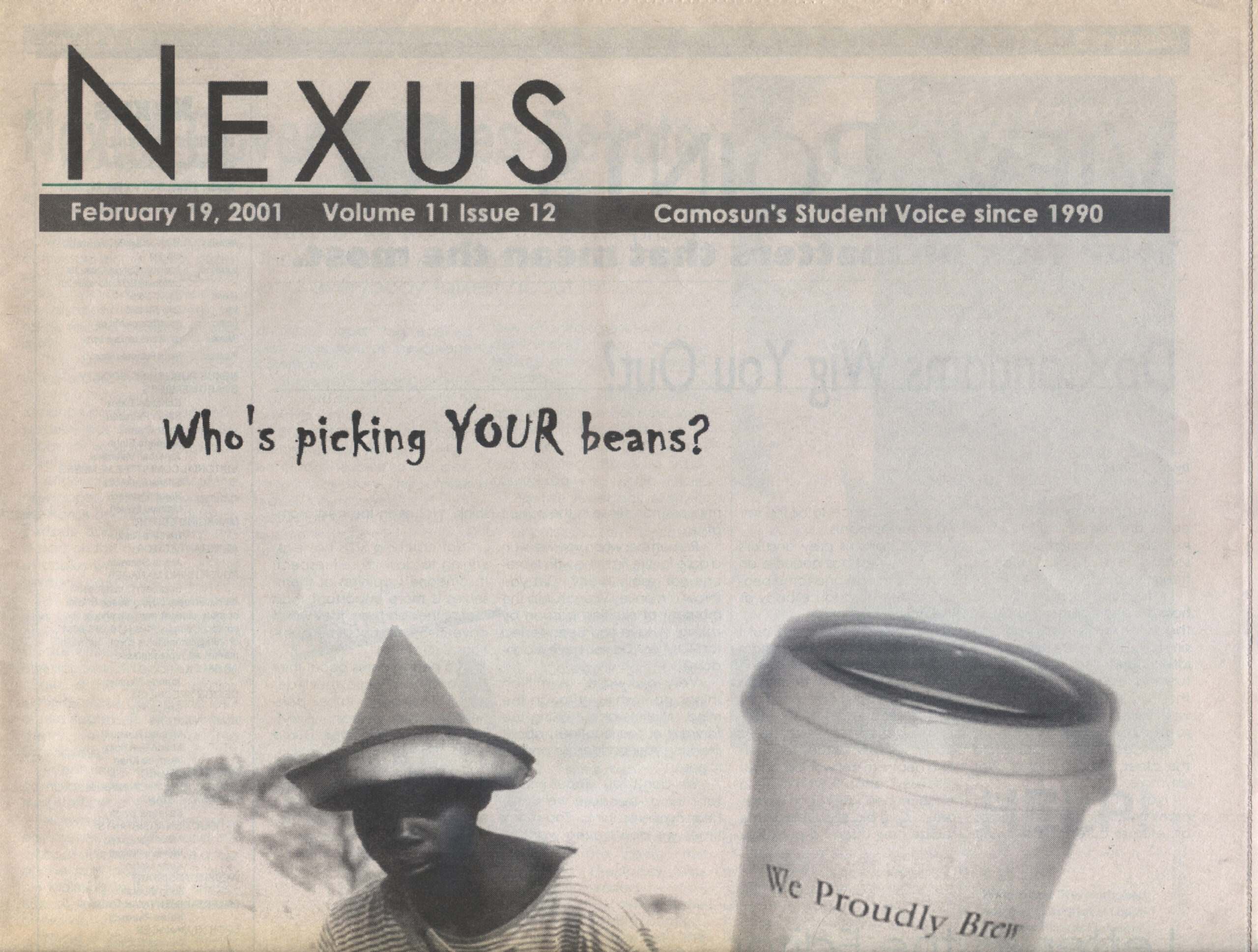 Unfriendly beans: In the February 19, 2001 issue of Nexus, writer Aaron Karapinka wrote about the negative effects coffee can have and the massive industry behind it built on exploitative labour practices. Fair trade coffee is a good alternative, but that gets expensive fast and few people are willing to pay more for something that’s cheap and readily available. An initiative was started to get campuses across Canada to use fair trade coffee, but no such luck. What’s a broke, tired college student supposed to do? I guess I’ll just have to stick to my Red Bull and Monster Energy drinks.